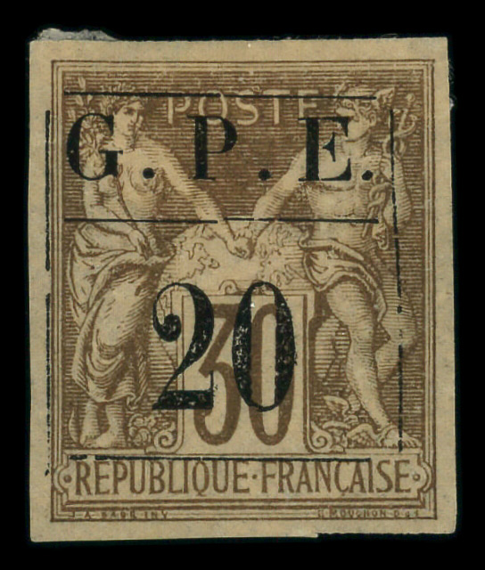 9179 og 1 image1884, 20c on 30c brown (Scott 1), o.g., heavy hinge remnants, Very Fine.