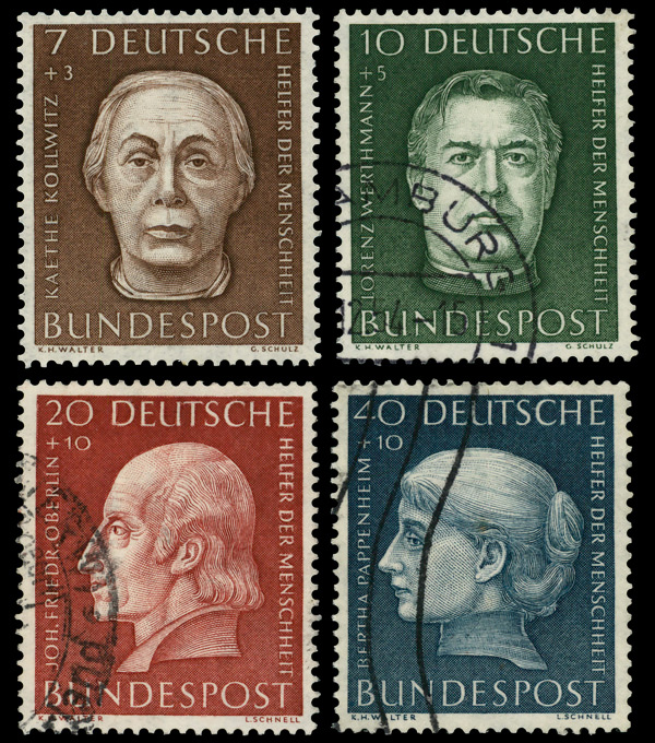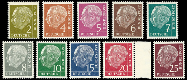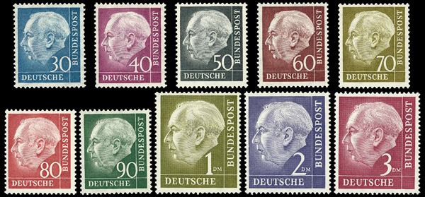 9163 nh 702-721 image1953 Heuss complete (Scott 702-721), set of 20, o.g., never hinged, Very Fine to Extremely Fine.