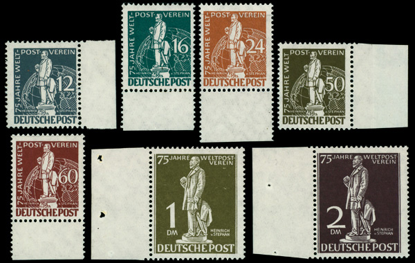 9161 nh 9N35-9N41 image1949 U.P.U. complete (Scott 9N35-9N41), set of 7, o.g., never hinged, Fine to Very Fine.