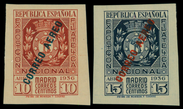 9346 nh C88-C89 imageAirmail, 1936, 10c-15c Madrid Philatelic Exhibition complete (Scott C88-C89), o.g., never hinged, Extremely Fine.