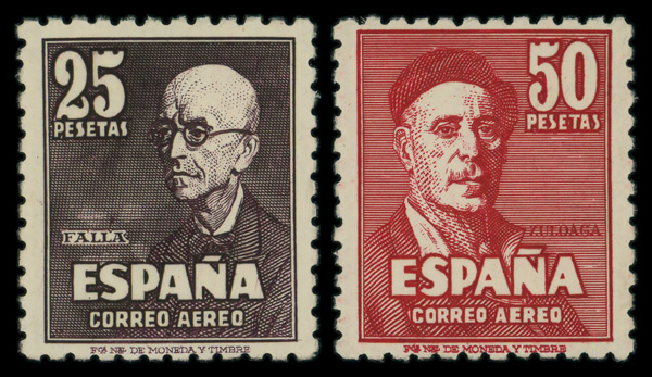 9348 nh C123-C124 imageAirmail, 1947, 25p-50p de Falla and Zuloaga (Scott C123-C124), o.g., never hinged, Very Fine to Extremely Fine.