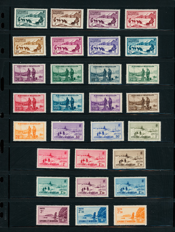 9352 nh 172-204 image1938-40, 2c-20fr Definitives, complete (Scott 172-204), set of 33, o.g., never hinged, Very Fine to Extremely Fine.