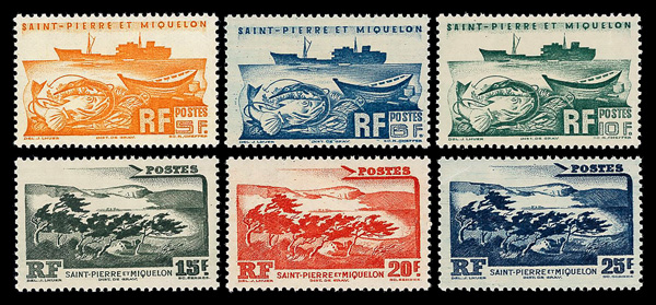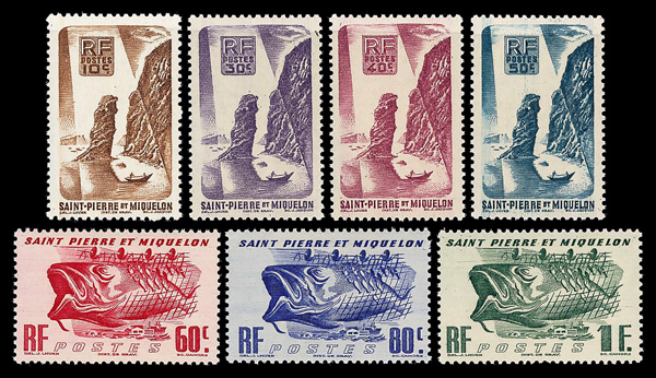 9353 nh 324-342 image1947, 10c-25fr Definitives, complete (Scott 324-342), set of 19, o.g., never hinged, Very Fine to Extremely Fine.