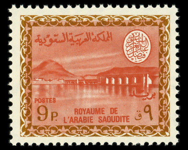 9333 496 image1976, 9p Wadi Hanifa Dam Faisal Cartouche (Scott 496), single, o.g., never hinged, Extremely Fine.