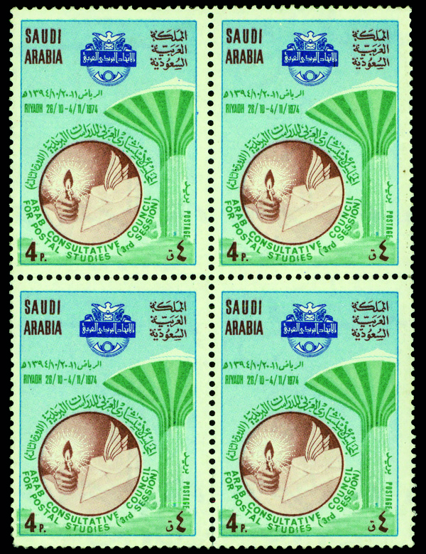 9329 nhbl 665 image1974, 4p 3rd Arab Consultative Council (Scott 665), block of 4, o.g., never hinged, Very Fine.