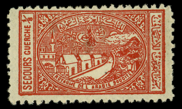 9340 og RA1 imageCharity Tax, 1934, Fund for Wounded in War With Yemen, 1/8g scarlet (Scott RA1), single, o.g., lightly hinged, Very Fine.