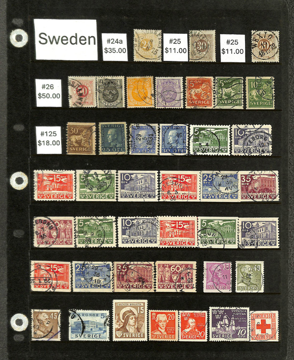 9358   imageSweden, Better Scandinavian group 1872-1948, 92 stamps beautifully arrainged on stock pages; includes #24a//400, B32//B48, C8, J8//J25, and O26//O38; catalog $650, Fine to Very Fine. (Image) (Image2) (Image3) (Image4) (All Images)