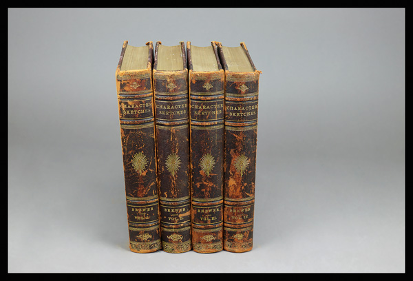9392 cobham brewer, rev. e. character sketche imageCobham Brewer, Rev. E., Character Sketches of Romance, Fiction and the Drama, 1892; four-volume leather-bound set with some wear but perfectly serviceable; tipped-in engraved illustrations under protective tissue paper, substantial boards, and gilt-edged pages; magnificent set that would look WONDERFUL in your library; Fine-VF. Shipping charges apply - weight 26 lbs. (Image) Suggested Bid $58