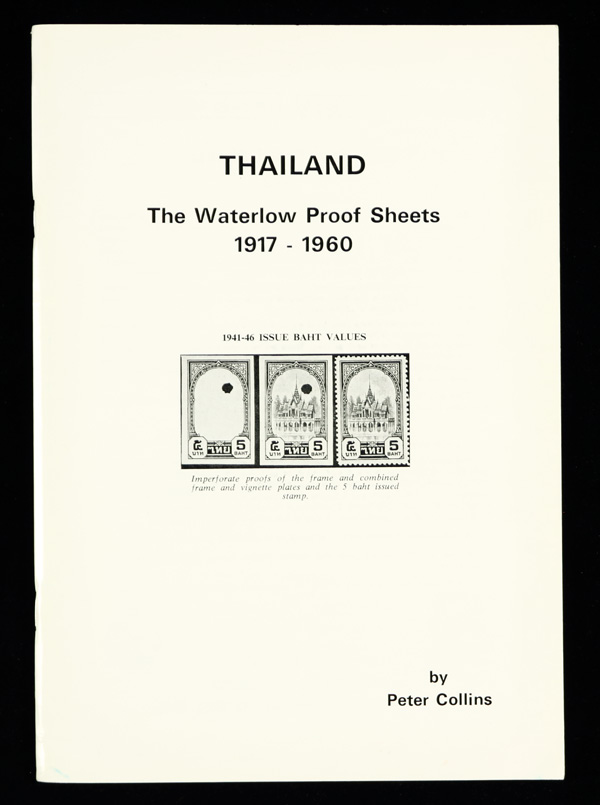 9395 L collins thailand imageCollins, Peter, Thailand: The Waterlow Proof Sheets, 1917-1960, 64pp, paperback; detailed study of the definitives, commemoratives and Revenues of the period. (Image) Suggested Bid $8