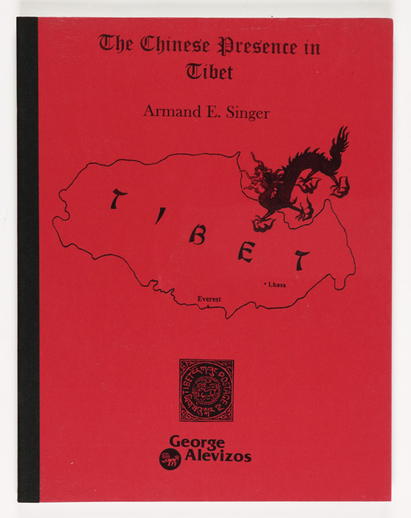 9398 L singer chinese presence in ti imageSinger, Armand E., The Chinese Presence in Tibet, 129 pp., tape-bound, 2002; photocopies (seven in full color) of pages from his unparalleled collection, again indexed and replete with annotations, covering period prior to the 1911 Chinese Occupation featuring letters and covers bearing impressive seals of Panchen Lamas, Chinese ambans, the Regent to the Dalai Lama, also postal warrants and reports, and more; 1911 Occupation Overprints highlighted by Specimens, sheets and many rare covers; and 1912 Chinese Military Expedition, 1935 Airpost to Tibetan Highlands, 1950 Prophetic Foreshadows of the Winds of War, Chinese Invasion Military Postal History, China Courts Mt. Everest, and much more; a wonderful introduction to this exotic field. Shipping charges apply - weight 0.8 lbs. (Image) Suggested Bid $8