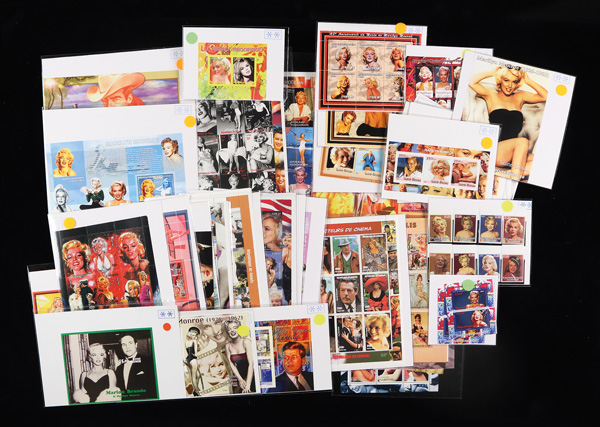 9387 culture acting monroe imageWorldwide, "Hello Norma Jean!" Marilyn Monroe Topical Collection, Approximately 75 souvenir sheets from Benin, the Democratic Republic of Congo, Guinea, Guinea-Bissau, Mongolia, and others, and nearly all not listed in Scott. Postally valid or not, these sheets are sure to attract attention! Fine to Very Fine. Shipping charges apply - weight 2 lbs. (Image) Suggested Bid $26