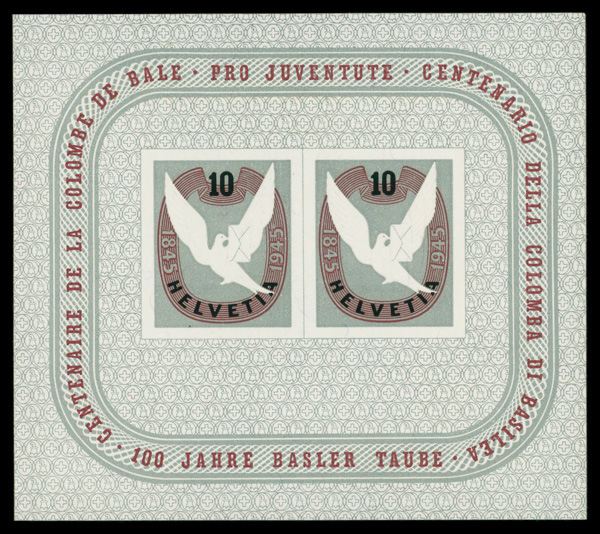 9362 nh B144 image1945, Basel Dove souvenir sheet (Scott B144), o.g., never hinged, Very Fine to Extremely Fine.