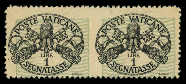 9380 nh J10 image1945, 1L Papal Arms, pair, imperf between (Scott J10), pair, o.g., never hinged, Fine to Very Fine.