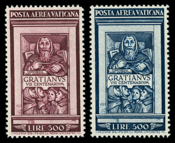9379 nh C20-C21 imageAirmail, 1951 Gratianus complete (Scott C20-C21), o.g., never hinged, Very Fine.