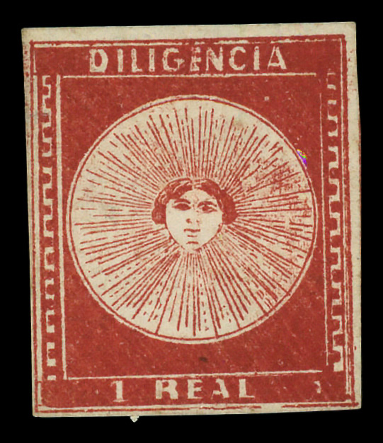 9376 og 3a image1856, 1r carmine vermilion 'El Sol de Mayo' (Scott 3a), o.g., lightly hinged, Fine to Very Fine.