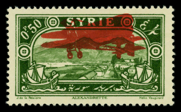 9367 og C34c image1929, 50c yellow green, double airplane overprint (Scott C34c), o.g., lightly hinged, Extremely Fine.