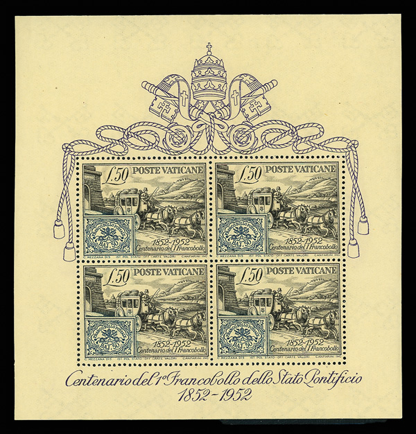 9378 nh 155a image1952 Stamp Centenary souvenir sheet (Scott 155a), o.g., never hinged, Very Fine to Extremely Fine.
