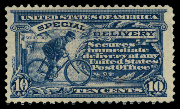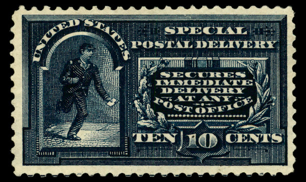 5363 nh E5 imageSpecial Delivery, 1895, 10¢ blue (Scott E5), o.g., never hinged, Very Fine to Extremely Fine.