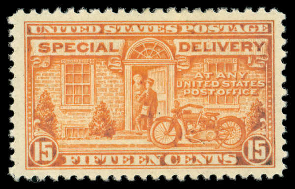 5373 og E13 imageSpecial Delivery, 1925, 15¢ deep orange (Scott E13), o.g., lightly hinged, Extremely Fine.