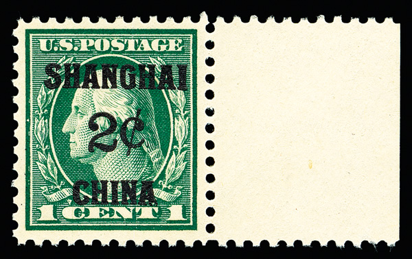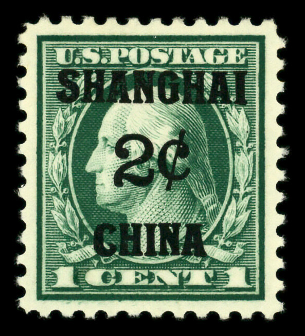 5383 og K1 imageOffices in China, 1919, 2¢ on 1¢ green (Scott K1), o.g., lightly hinged, Extremely Fine to Superb.