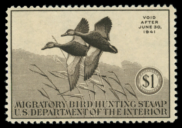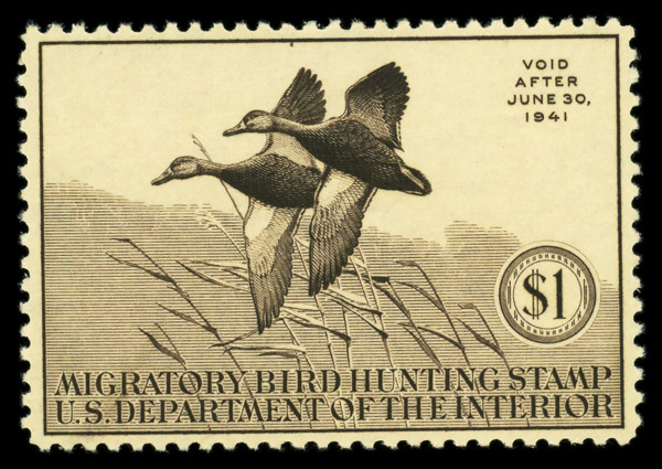 5491 og RW7 imageFederal Duck Stamp, 1940, $1 Black Mallards (Scott RW7), o.g., lightly hinged, Very Fine.