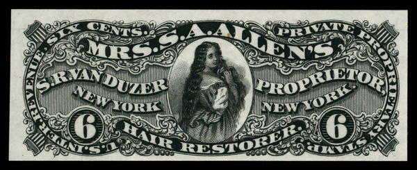 5482 P RS250P3 imageVan Duzer, S.R., 6¢ black, plate proof on India (Scott RS250P3), without gum as issued, Fine to Very Fine.