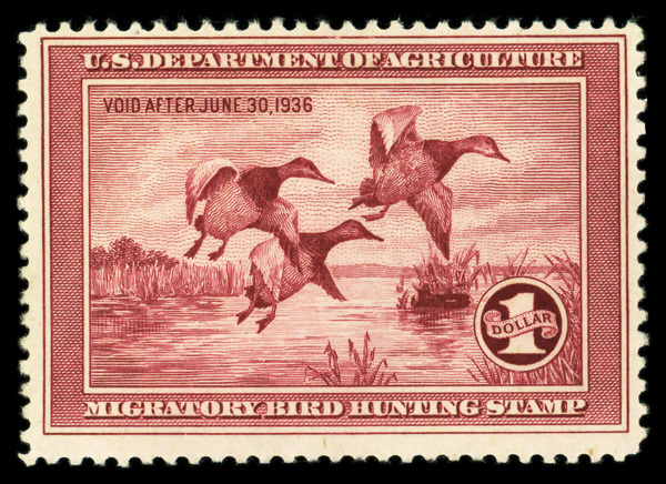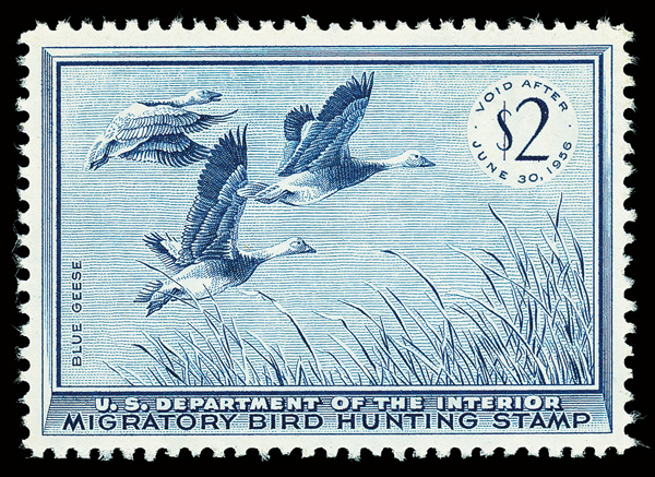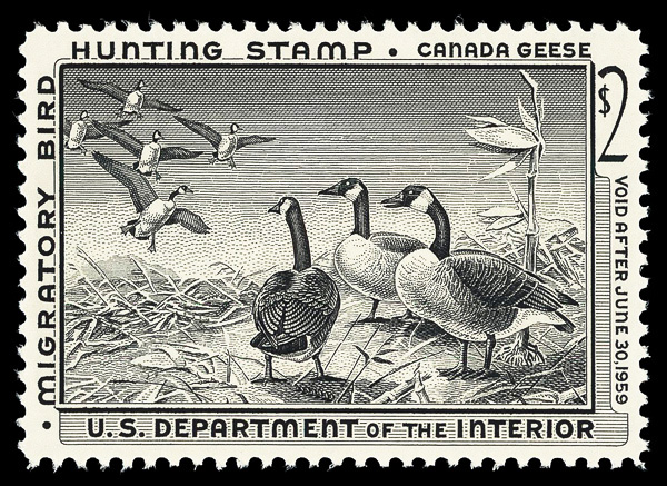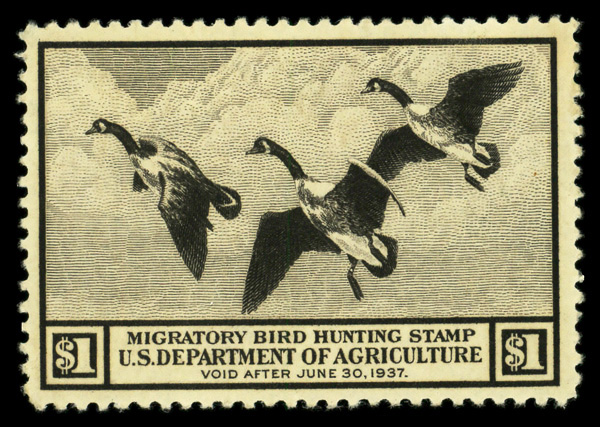 5486 nh RW3 imageFederal Duck Stamp, 1936, $1 Canada Geese (Scott RW3), o.g., never hinged, Very Fine to Extremely Fine.