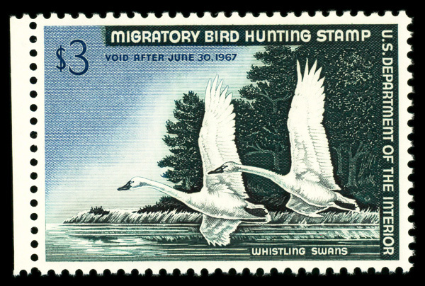 5519 nh RW33 imageFederal Duck Stamp, 1966, $3 Whistling Swans (Scott RW33), o.g., never hinged, Extremely Fine to Superb.