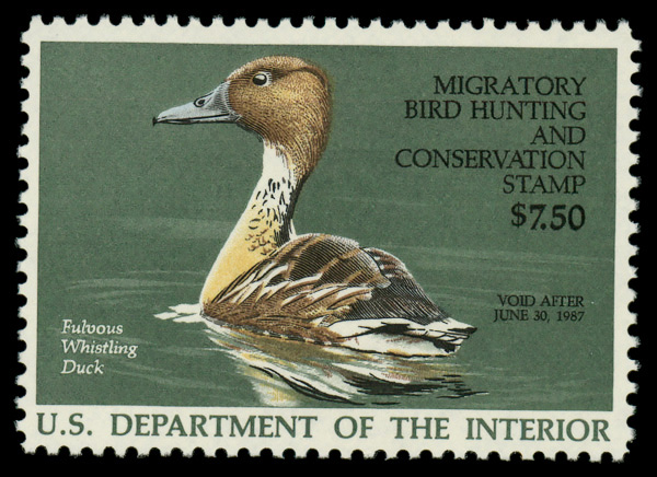 5530 og RW53 imageFederal Duck Stamp, 1986, $7.50 Fulvous Whistling Duck (Scott RW53), glazed o.g., Very Fine.