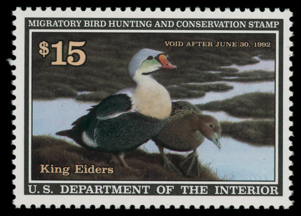 5536 nh RW58 imageFederal Duck Stamp, 1991, $15 King Eiders (Scott RW58), o.g., never hinged, Extremely Fine.