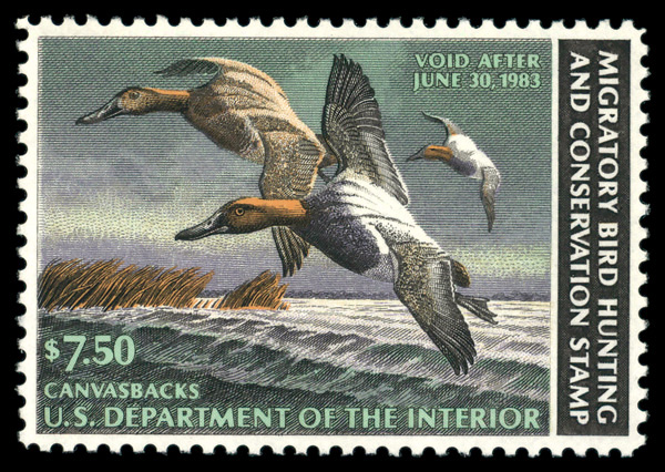5527 nh RW49 imageFederal Duck Stamp, 1982, $7.50 Canvasbacks (Scott RW49), o.g., never hinged, Extremely Fine.