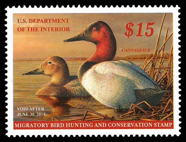 5555 nh RW81 imageFederal Duck Stamp, 2014, $15 Canvasbacks (Scott RW81), High-grade freshness, o.g., never hinged, Superb, with 2014 P.S.E. certificate graded GEM 100.