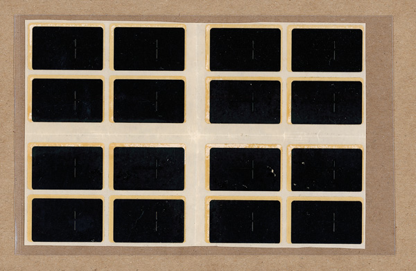 5571 nhbl TD117a imageTest Stamp, 1973, Christmas issue, black, self-adhesive, on imperf backing paper (Scott TD117a), cross-gutter block of 16, o.g., never hinged, exceptional positional from center of press sheet, with strong color; creased within gutters, light glossing or spots of color loss from prior storage, Very Fine nonetheless. (Image) Suggested Bid $195