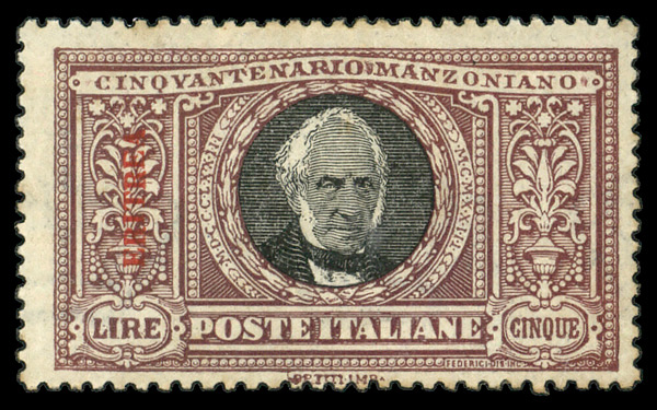 5575 og 80 image1924, Alessando Manzoni 5l violet & black overprinted in red (Scott 80), single, o.g., hinged, Fine to Very Fine.