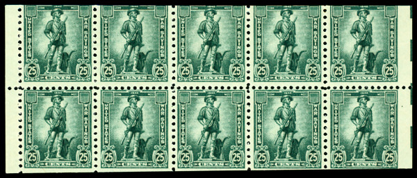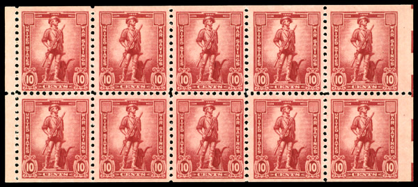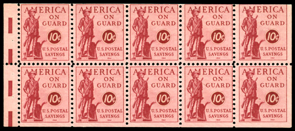 5565 BKnh WS7b image1942, 10¢ rose red, with Electric Marks at left (Scott WS7b), booklet pane of 10, o.g., never hinged, Fine to Very Fine.