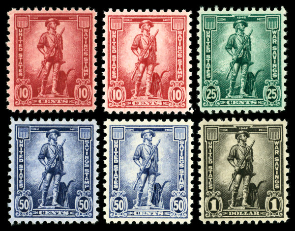5561 nh PS11-PS15 imagePostal Savings, 1941, 10¢ to $5 complete (Scott PS11-PS15), o.g., never hinged, Extremely Fine.