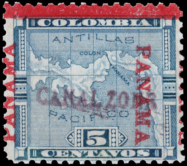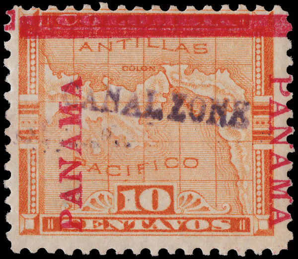 5598 og 1 image1904, 2c Map, rose (Scott 1), fresh and well centered with a neat Canal Zone bar cancel, Very Fine.