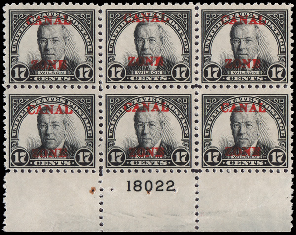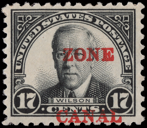 5622 og 91c image1926, 17¢ Wilson, sharp "A", "ZONE CANAL" (Scott 91c), o.g., nicely centered and fresh, Very Fine. Just 450 recrded.