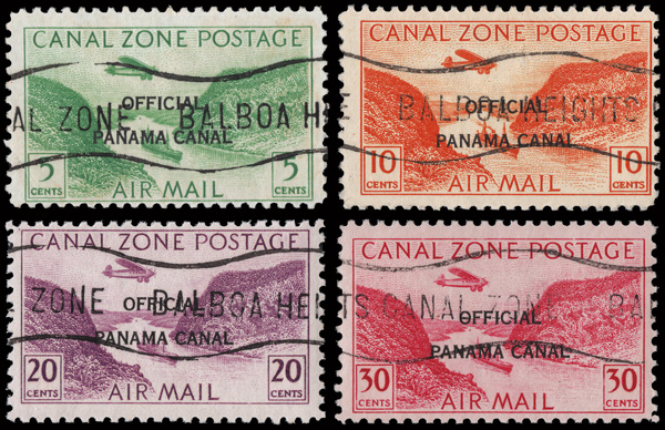 5626 O CO8-CO12 imageAirmail Officials, 1941, 5¢ to 40¢ complete, overprint type II (Scott CO8-CO12), set of 5, canceled to order, as always; 5c & 10c used (without gum), 20c-40c with full, never hinged o.g., bright fresh colors, Fine to Very Fine.