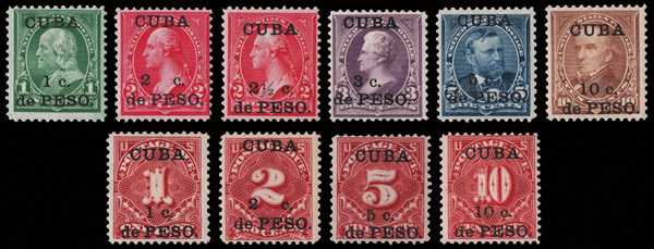 5635 og 221/226, J1-J4, E1 image1899, 1c on 1¢ Franklin (Scott 221/226, J1-J4, E1), missing the two type IV 2¢ stamps and the rare 10¢ type II, o.g., Fine to Very Fine.