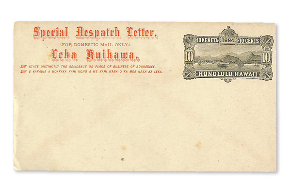 5656 og UE1 imageSpecial Delivery Envelope, 1885, 10¢ black (Scott UE1), entire; gum on flap discolored as often and a few discolored specks, Very Fine.