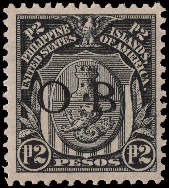 5674 nh 252 var. image1906, 2p black with black Bandholtz "OB" overprint (Scott 252 var.), o.g., never hinged, fresh and well centered, Very Fine. (Image) Suggested Bid $75