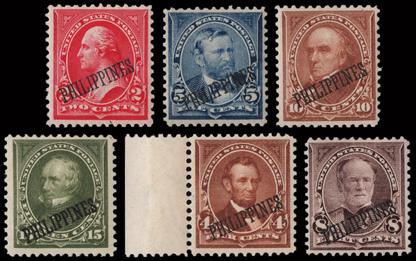 5661 og 214//222 image1899-1901, Overprints on 2¢//50c, double-lined watermark, eight different (Scott 214//222), o.g., all fresh and bright, Fine to Very Fine.
