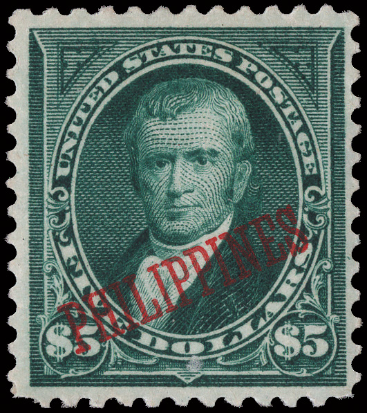 5666 og 225 image1901, $5 dark green (Scott 225), an exceptional mint high value, o.g., lightly hinged, wonderfully fresh and quite well centered with marvelous color, Very Fine.