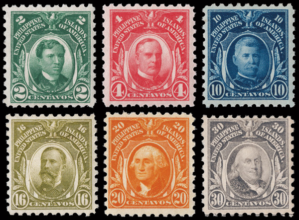 5676 og 276-277, 280-284 image1914 Definitives, perf. 10, 1c-2c & 10c-1p (Scott 276-277, 280-284), o.g., bright fresh colors, Fine to Very Fine.