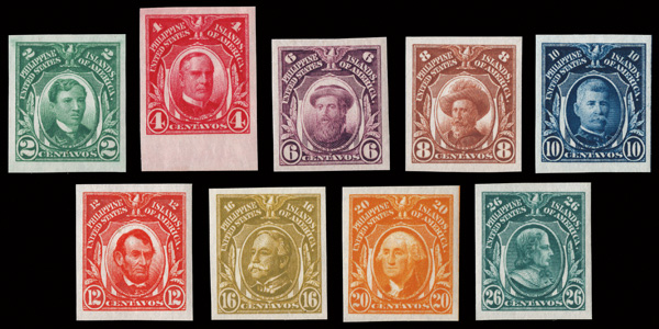 5679 nh 340a-353a image1925, "Lambert" Imperf Definitives to the 30c (Scott 340a-349a), a select short set, o.g., never hinged, post office fresh with large balanced margins (the 4c with bottom sheet margin), Extremely Fine.