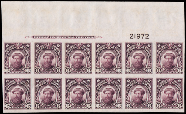 5680 nhbl 342a image1925, "Lambert" Imperf 6c deep violet (Scott 342a), a pristine top margin Imprint & Plate No. 21972 block of 12, o.g., never hinged, bright and fresh with large margins, Very Fine to Extremely Fine.