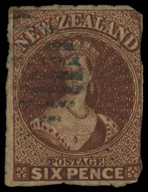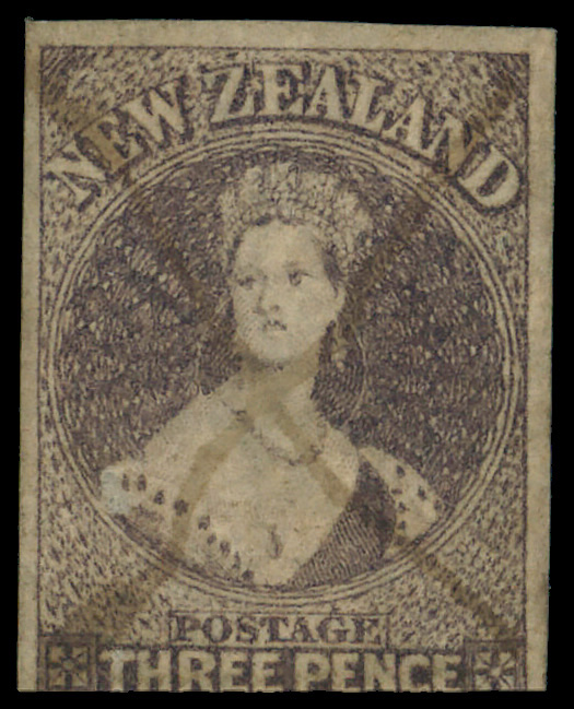 5828 O 13 image1862, Queen Victoria "Chalon Head", 3d brown lilac, imperf (Scott 13), Large Star watermark, Fine to Very Fine.