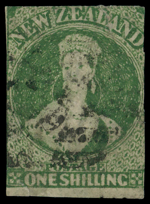 5831 O 15 image1862, Queen Victoria "Chalon Head", 1s yellow green, imperf (Scott 15), Large Star watermark; tiny margin tears, Very Good.