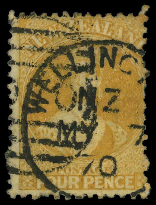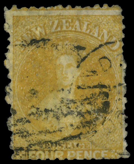 5832 O 35 image1865, Queen Victoria "Chalon Head", 4d yellow, perf 12½ (Scott 35), Large Star watermark; trimmed perfs at bottom, Fine to Very Fine.